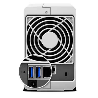 DS216j 配備 USB 3.0 埠,讓你能夠連接不同的外接儲(chǔ)存裝置,同時(shí)擁有快速、高效的文件傳輸效率。透過(guò)支持 USB 3.0 接口,其提供較前一代快 10 倍的傳輸速度,不僅使外接硬盤的數(shù)據(jù)傳輸更為順暢,也可降低耗電量。