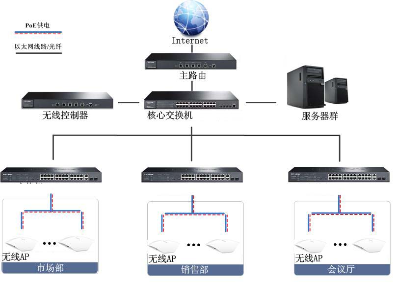 企業(yè)單位網(wǎng)絡(luò)較為復(fù)雜,對(duì)網(wǎng)絡(luò)可管理性與可維護(hù)性要求較高。無(wú)線(xiàn)AP部署位置的靈活性,并且不能成為火災(zāi)隱患。