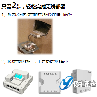 銳捷墻面式 AP,86面板盒大小,只需要替換掉原有的網(wǎng)絡(luò)接口面板,不打洞、不施工,不需要停止營業(yè)。